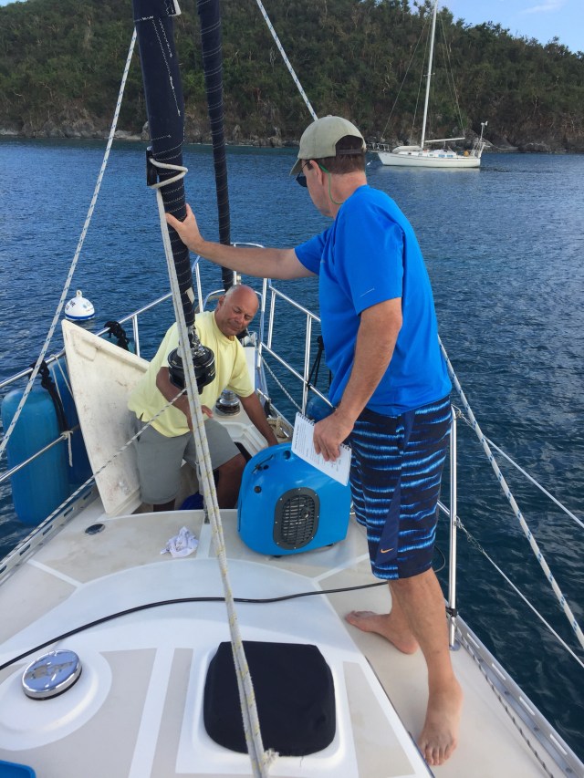 We were situated in Charlotte Amalie and didn’t think it would exactly be the cleanest spot for our first test run of fresh water, so we moved to another cleaner anchorage the following day.